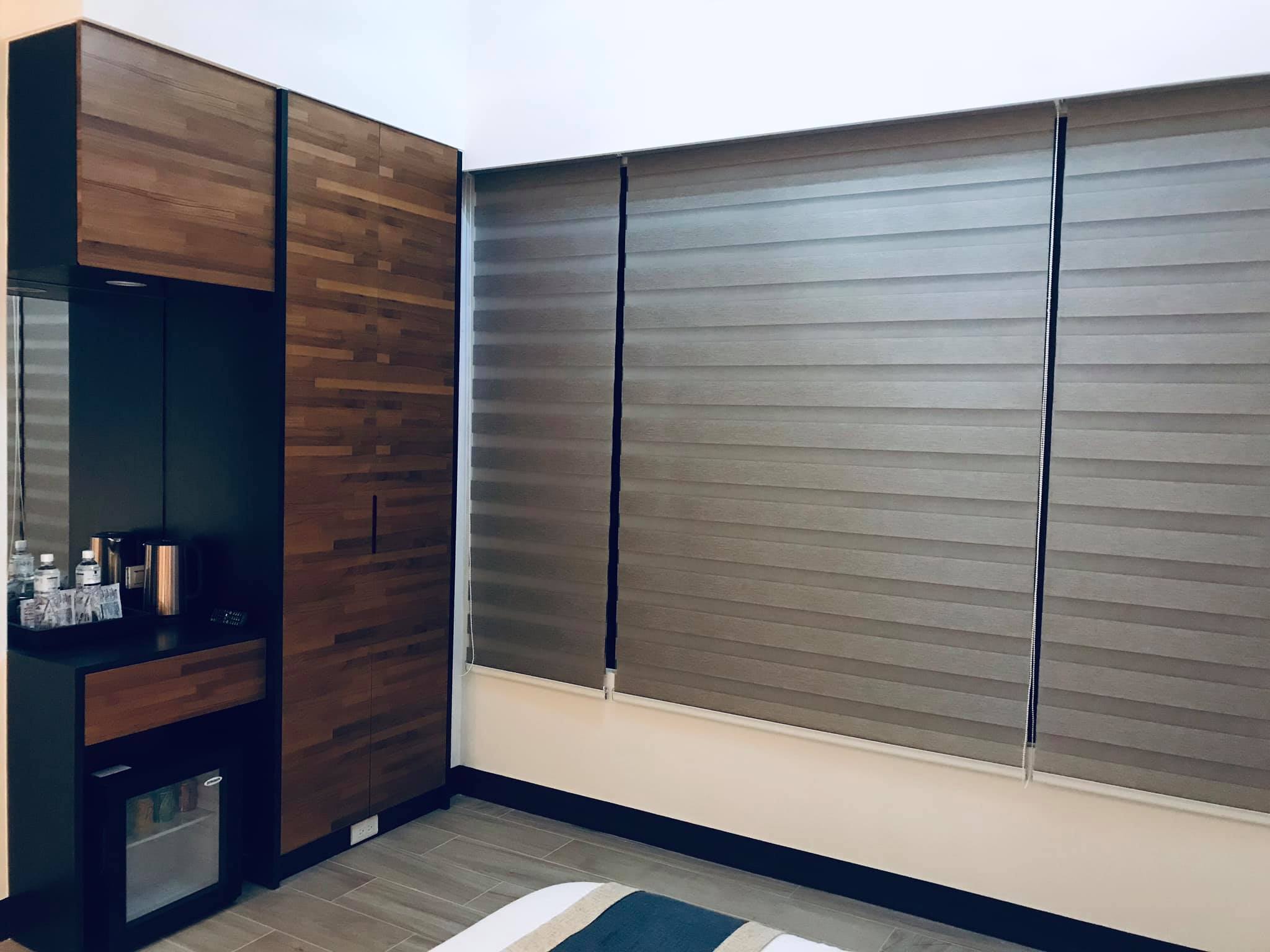 全房採用全球唯一抗菌調光簾,光線調節自如,保留窗外美濃聚落的景色。